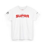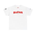 This classic crew tee brings car-culture energy into everyday wear. Soft, mid-weight cotton drapes with relaxed shape while crisp DTG and DTF prints deliver bold front and back graphics—headline SUPRA typography on the chest, a layered car illustration on the back, and subtle sleeve marks for an authentic, track-day feel. Wear it to weekend meetups, late-night garage sessions, or when you want a clean, automotive statement that still feels lived-in. The natural white ground and smooth knit make the printed artwork pop, and the tear-away label keeps the neck comfortable during long drives or long hangs with friends.